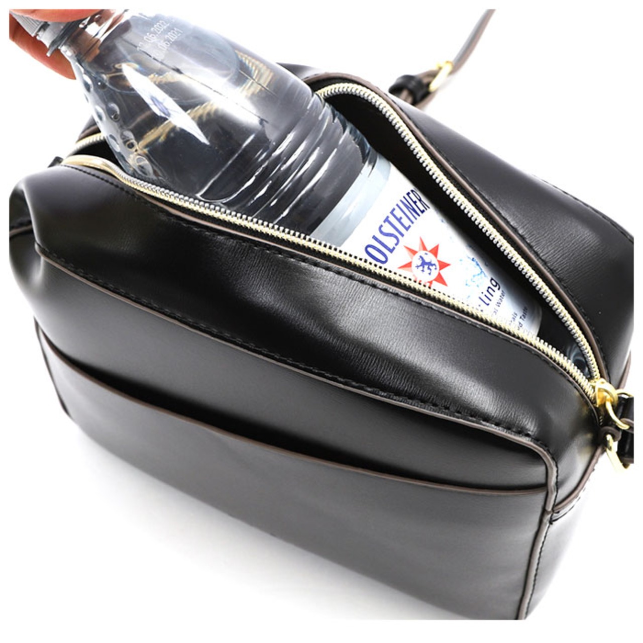 ・滑らかなフェイクレザー(PU)素材を使用した、ミニショルダーバッグ。