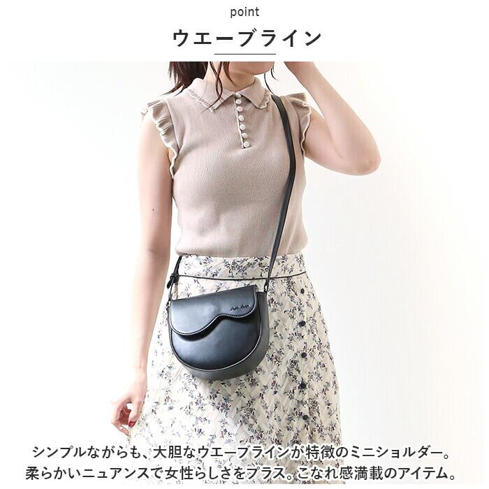 ・シンプルながらも、大胆なウエーブラインが特徴のミニショルダー。柔らかいニュアンスで女性らしさをプラス。こなれ感満載のアイテム。