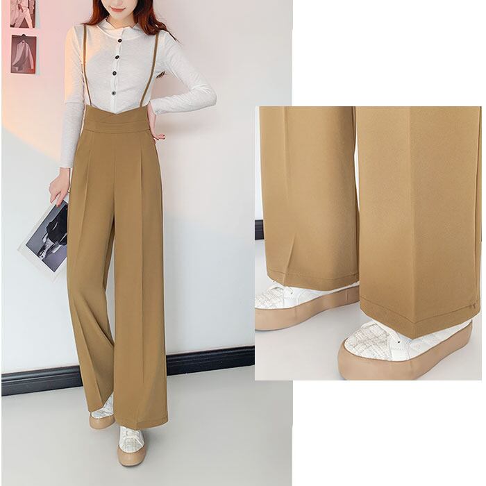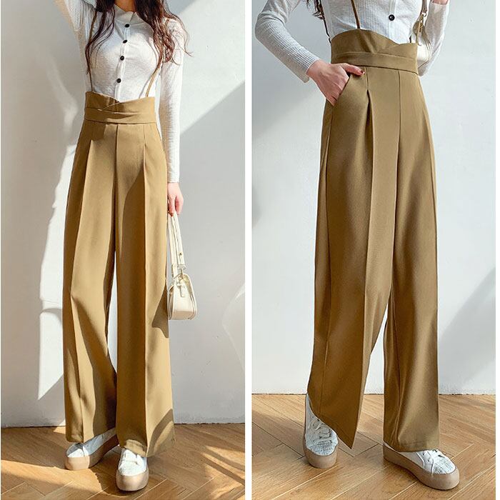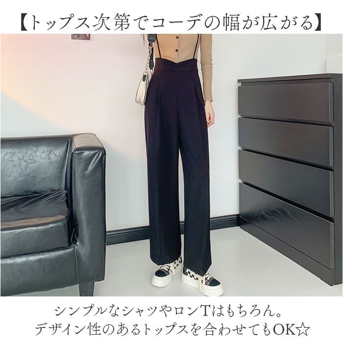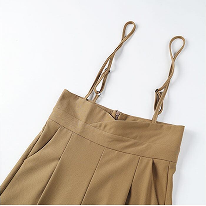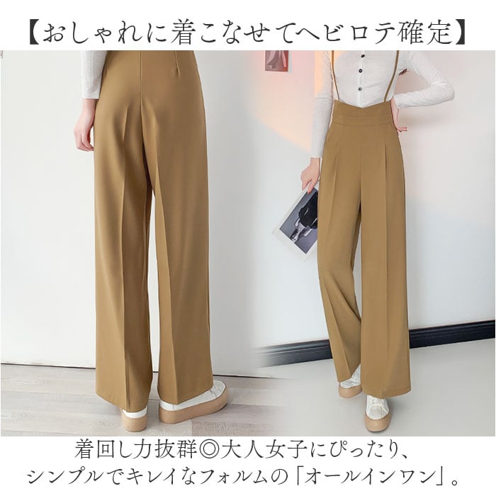 ・華奢な肩紐を付け、パンツ感覚で着用♪ゆとりを持たせた、すとんと落ちるレッグライン。