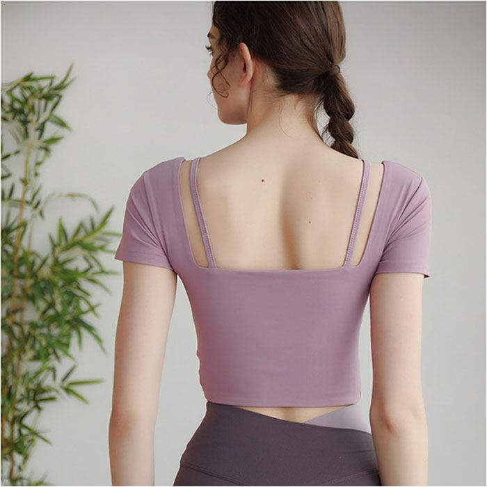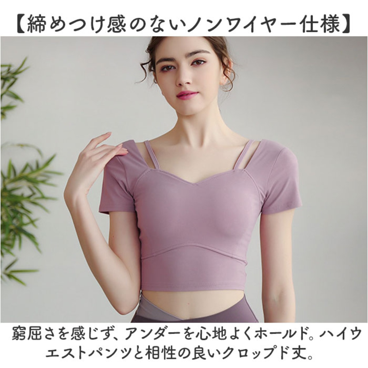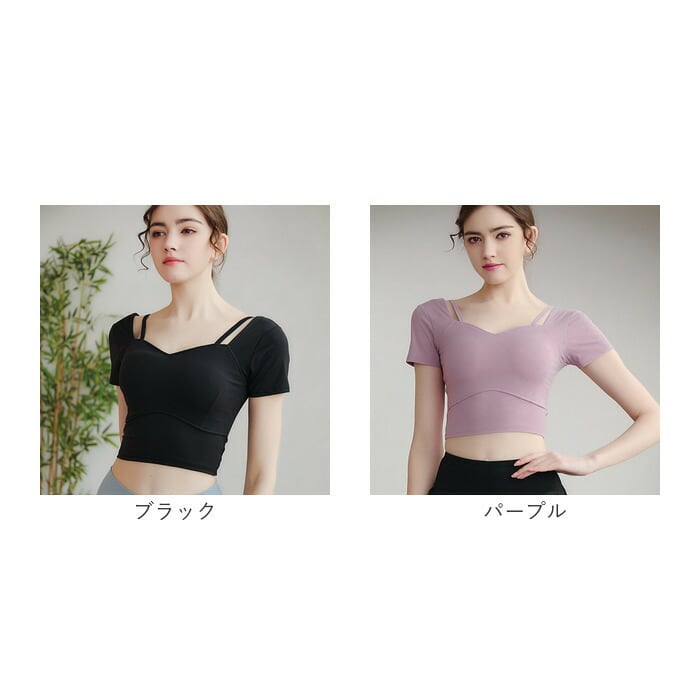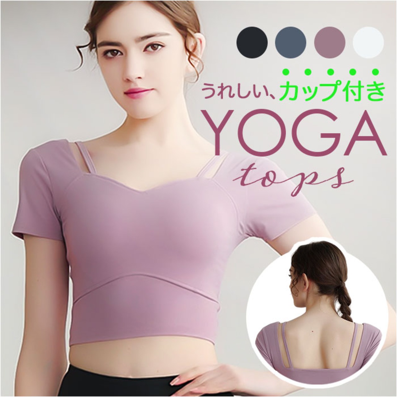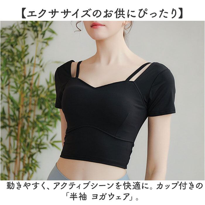 ・動きやすく、アクティブシーンを快適に。カップ付きの「半袖 ヨガウェア」。