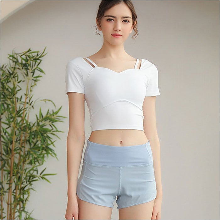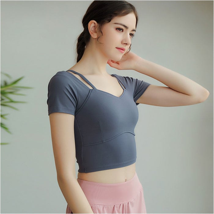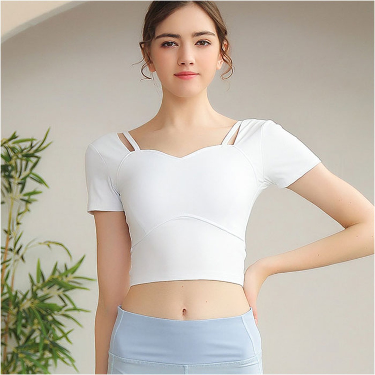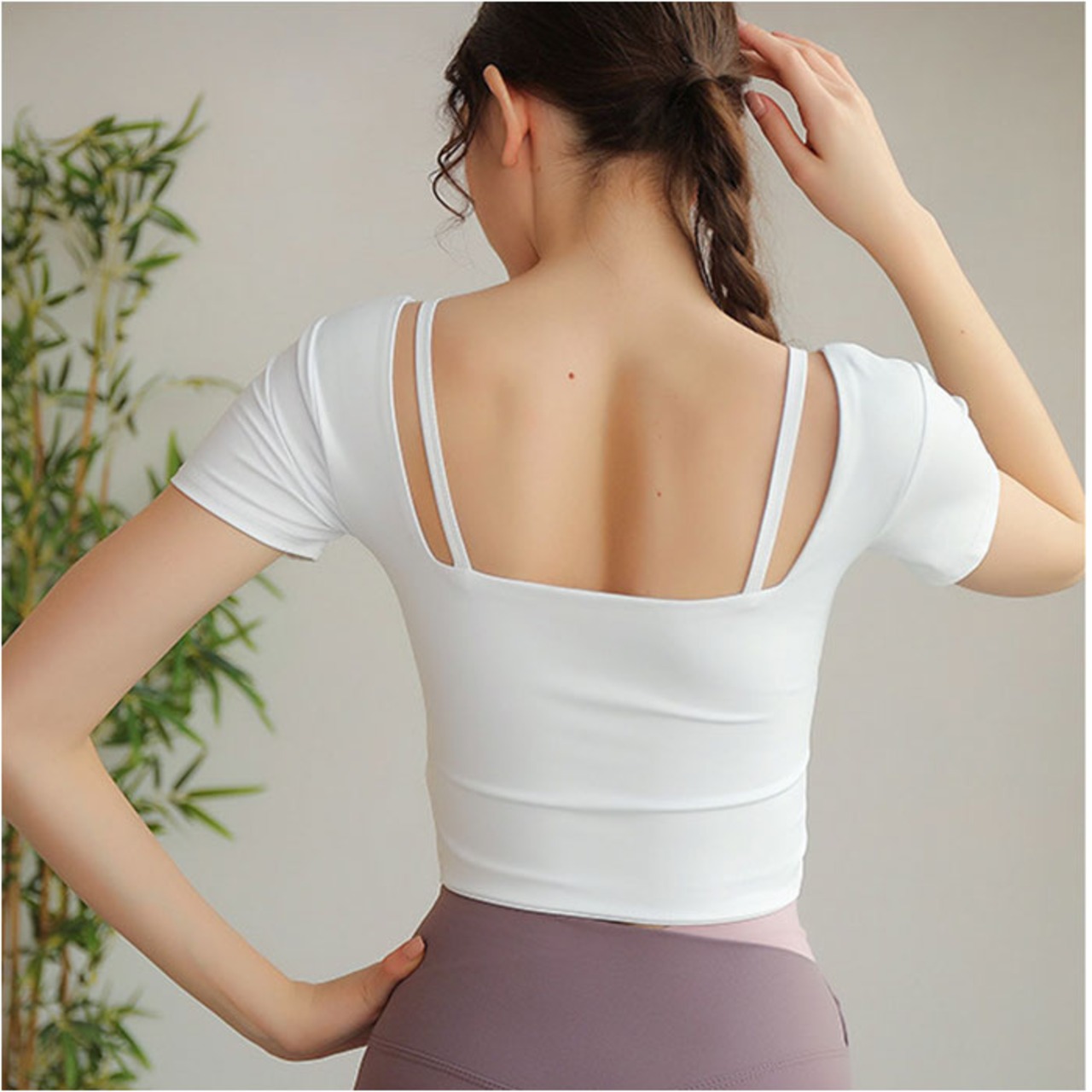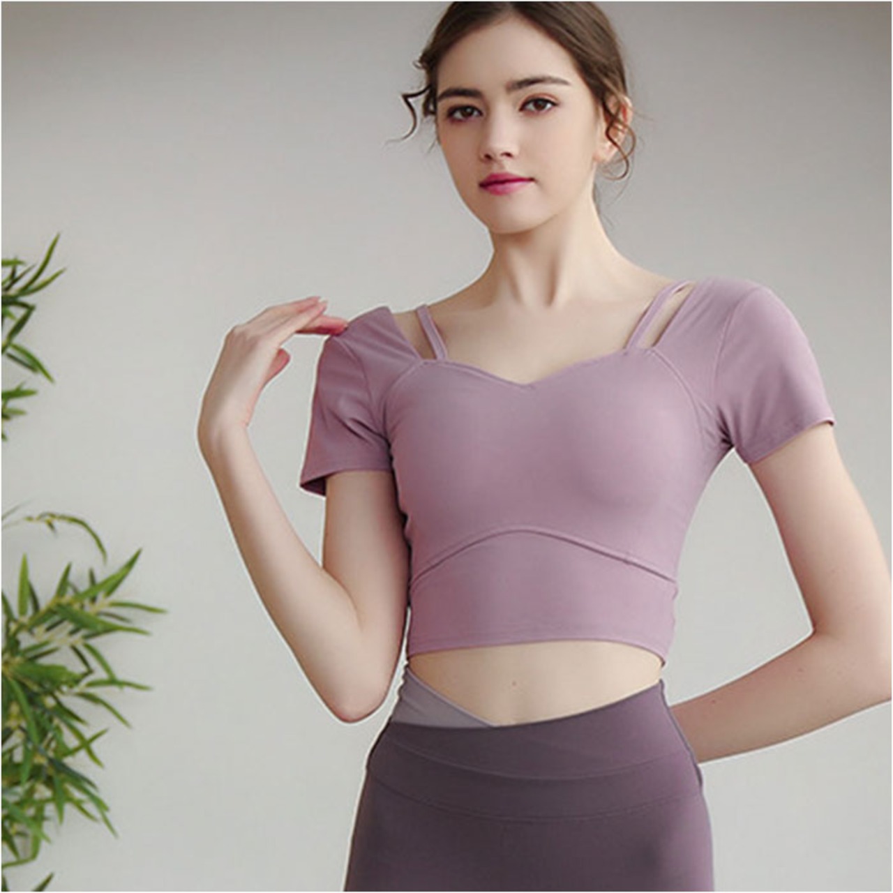 ・動きやすく、アクティブシーンを快適に。カップ付きの「半袖 ヨガウェア」。