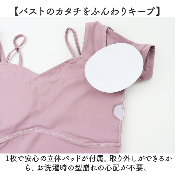 ・1枚で安心の立体パッドが付属。取り外しができるから、お洗濯時の型崩れの心配が不要。