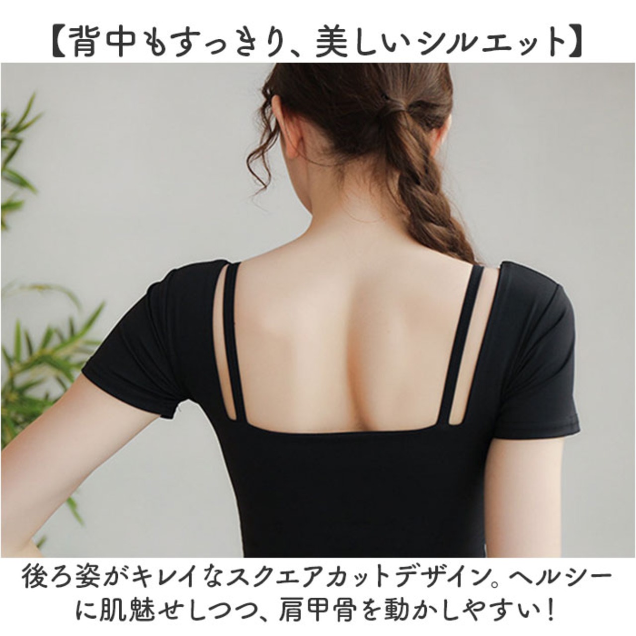 ・後ろ姿がキレイなスクエアカットデザイン。ヘルシーに肌魅せしつつ、肩甲骨を動かしやすい!