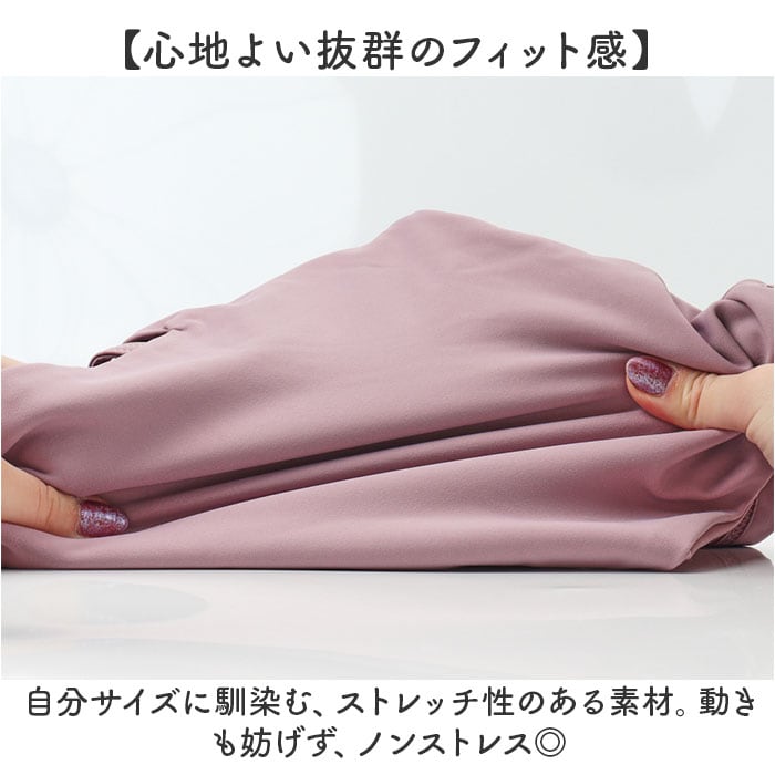 ・自分サイズに馴染む、ストレッチ性のある素材。動きも妨げず、ノンストレス◎