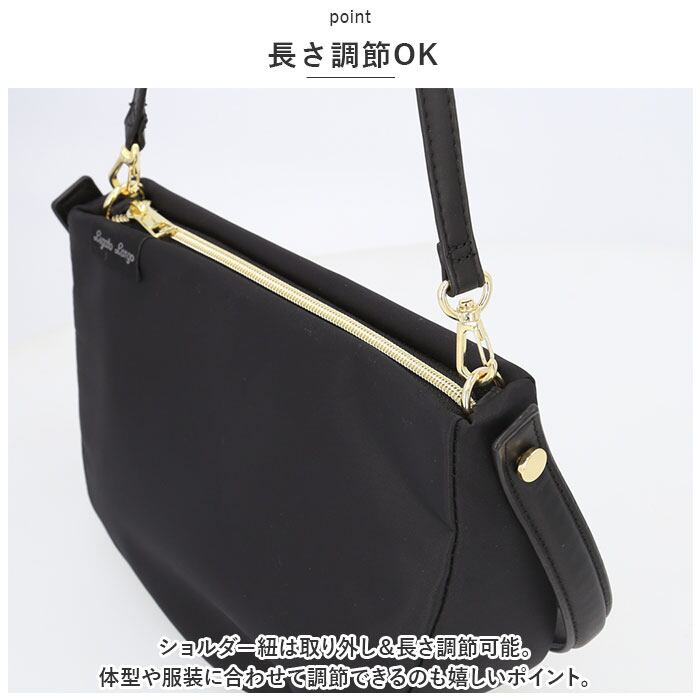 ・ショルダー紐は取り外し&長さ調節可能。体型や服装に合わせて調節できるのも嬉しいポイント。