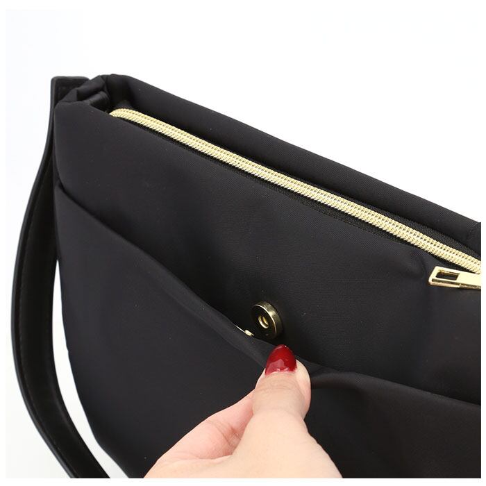 ・洋服やシーンを選ばない、大人シンプルなデザイン。カジュアルになりがちなショルダーバッグを上品な印象に仕上がる大人のバッグ。