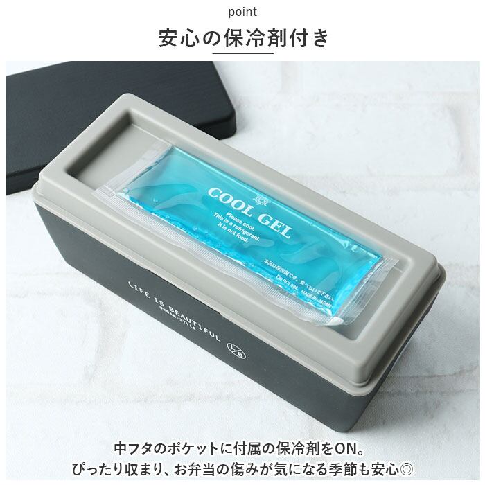 ・中フタのポケットに付属の保冷剤をON。ぴったり収まり、お弁当の傷みが気になる季節も安心◎