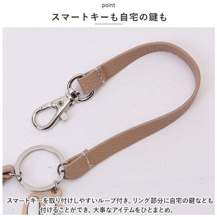 ・スマートキーを取り付けしやすいループ付き。リング部分に自宅の鍵なども付けることができ、大事なアイテムをひとまとめ。
