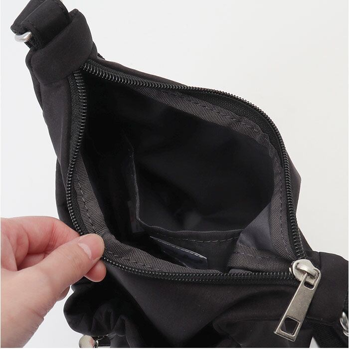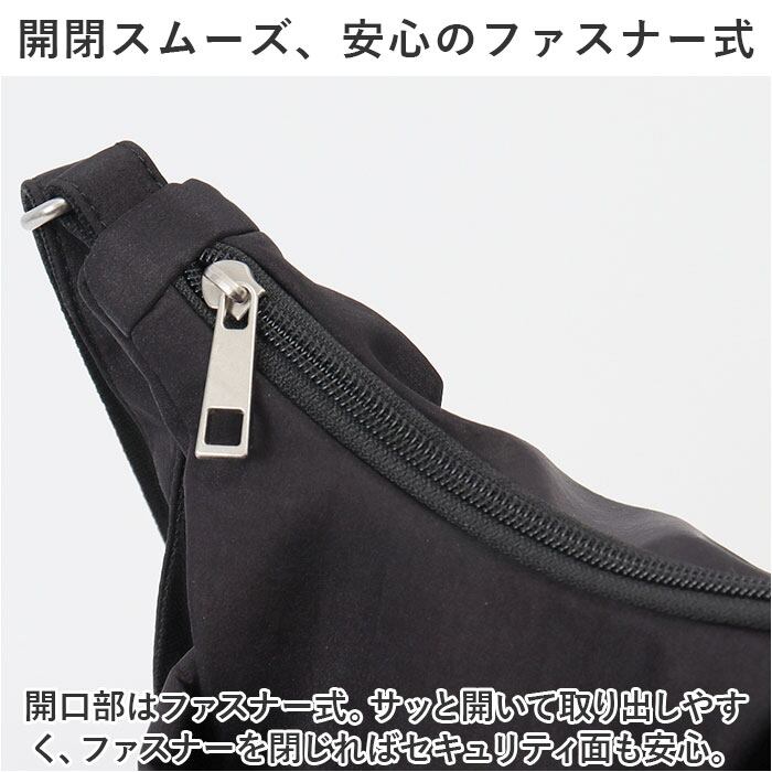 ・開口部はファスナー式。サッと開いて取り出しやすく、ファスナーを閉じればセキュリティ面も安心。