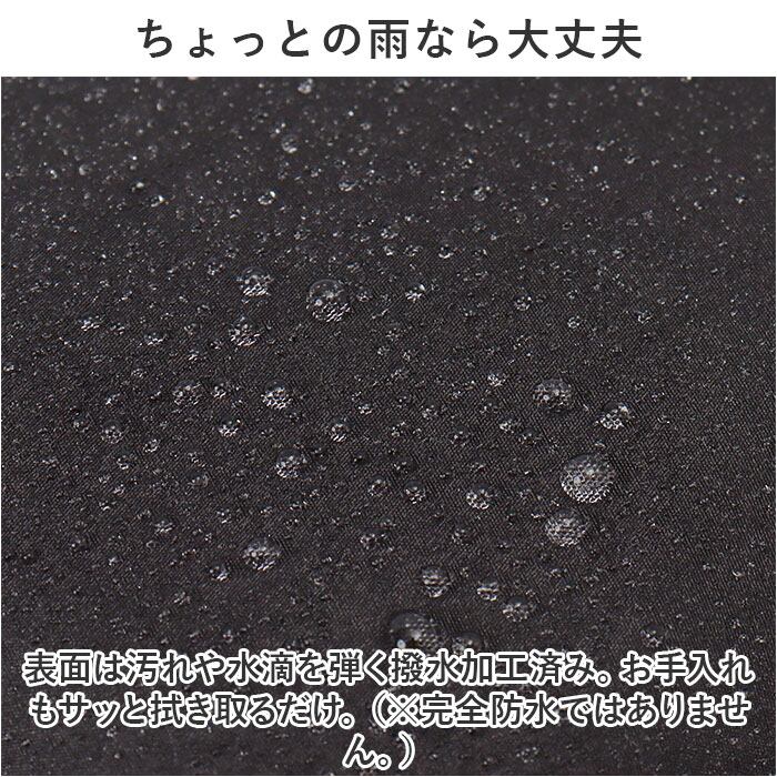 ・表面は汚れや水滴を弾く撥水加工済み。お手入れもサッと拭き取るだけ。(※完全防水ではありません。)
