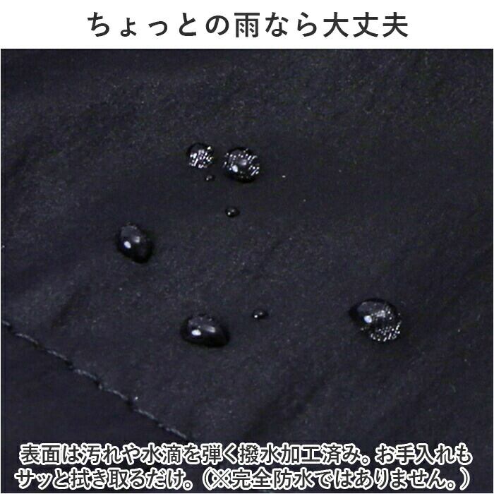・表面は汚れや水滴を弾く撥水加工済み。お手入れもサッと拭き取るだけ。(※完全防水ではありません。)