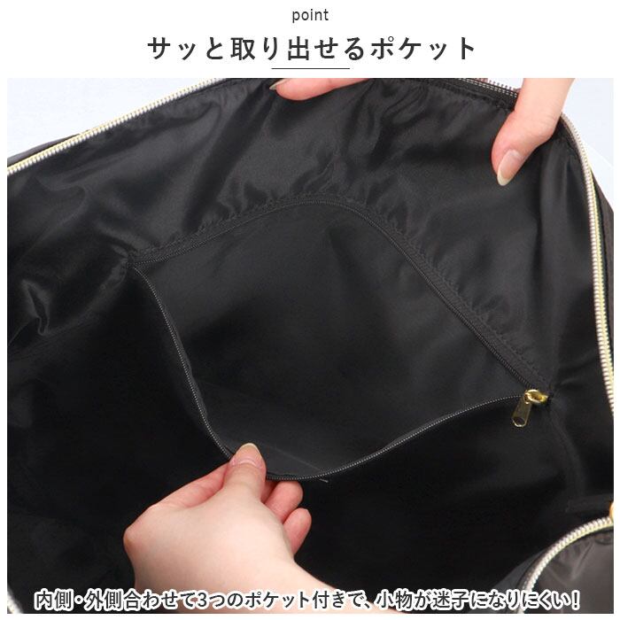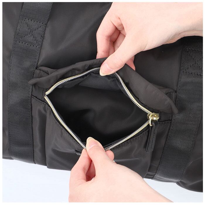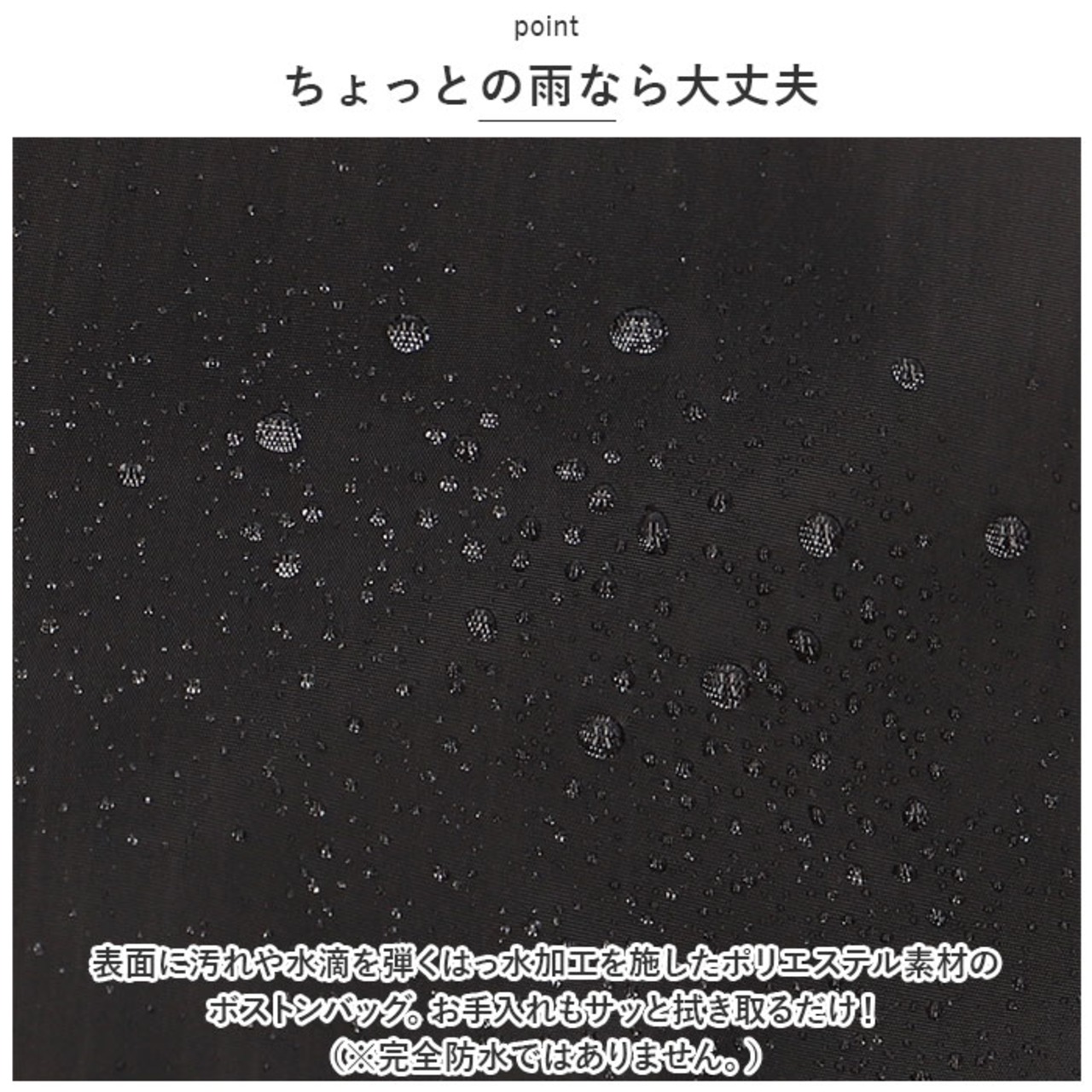 ・表面に汚れや水滴を弾くはっ水加工を施したポリエステル素材のボストンバッグ。お手入れもサッと拭き取るだけ!(※完全防水ではありません。)