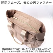 ・開口部は天ファスナー式。ガバっと開いて出し入れしやすく、ファスナーを閉じれば中身のこぼれ落ちをガード。