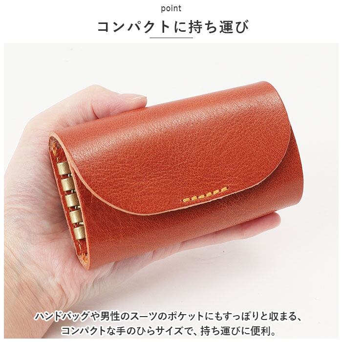 ・ふんわり優しい半月形のフラップと、赤いステッチがワンポイント。こだわりの天然皮革で仕上げた「Lien -リアン- ルビーレザーキーケース」が新登場。