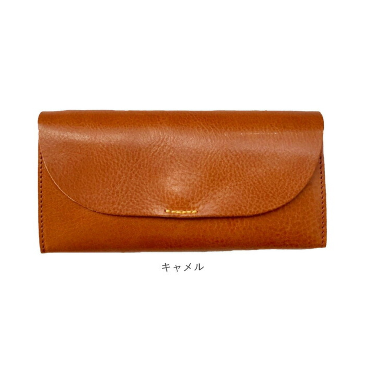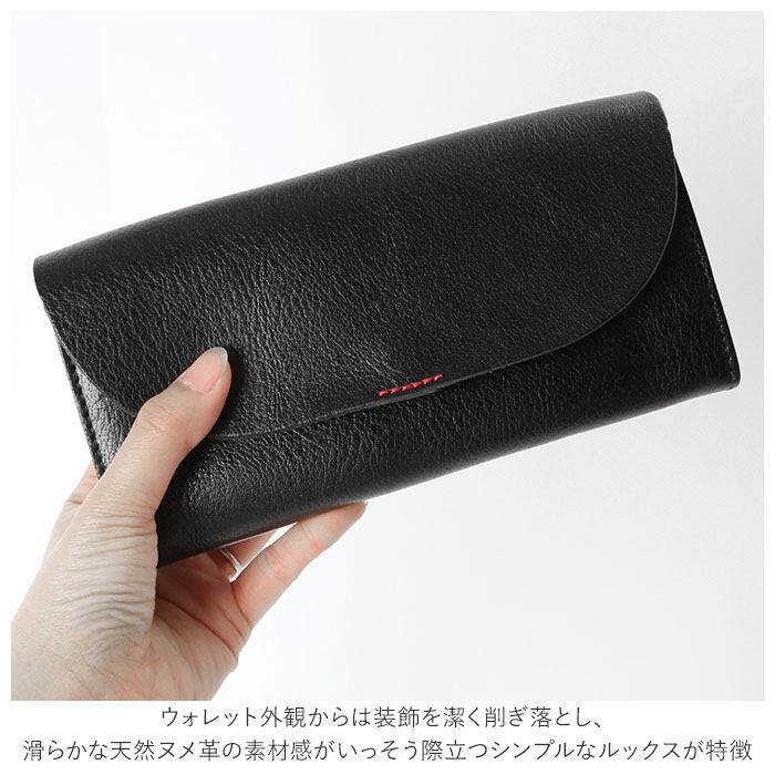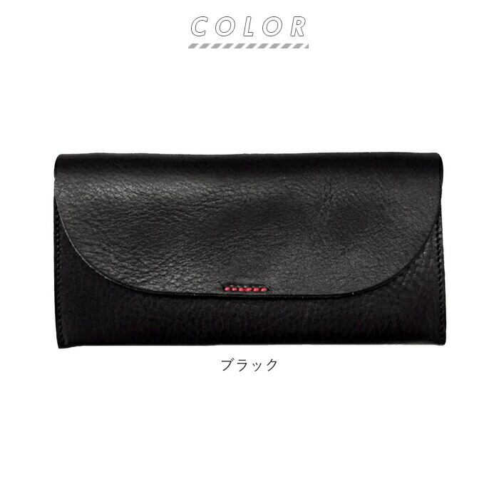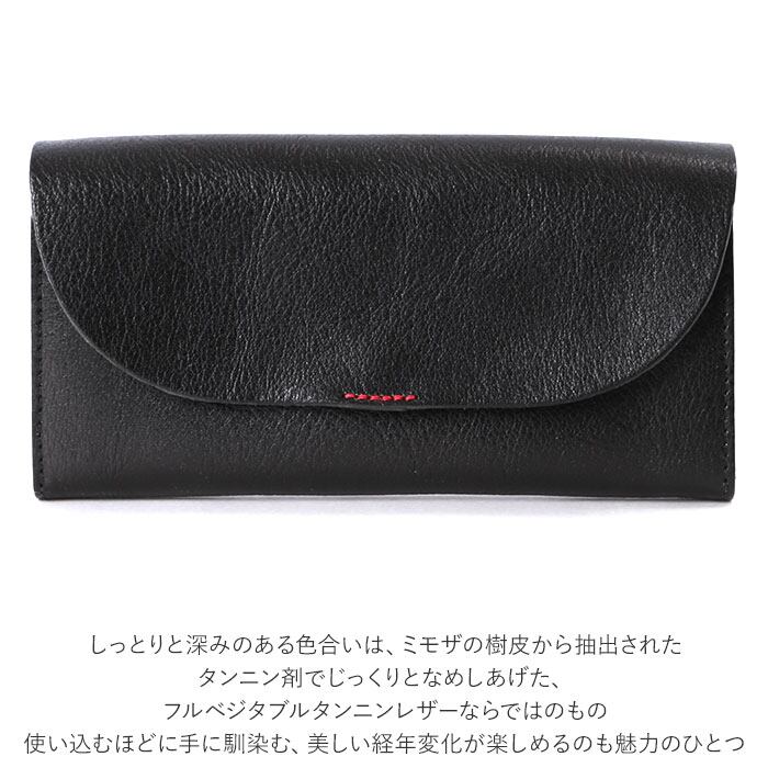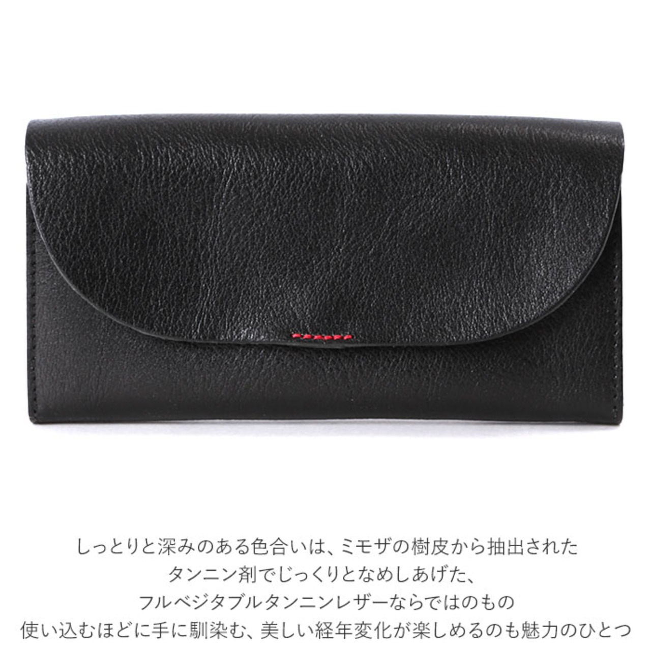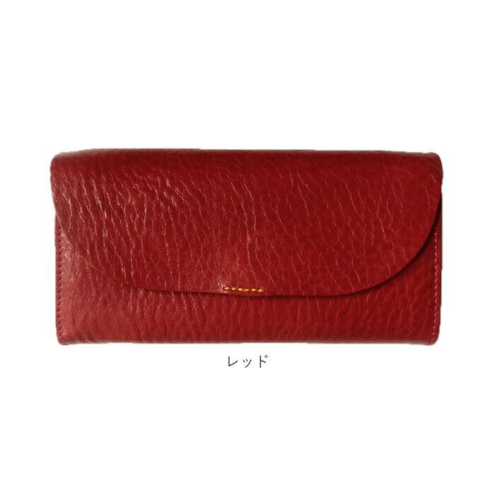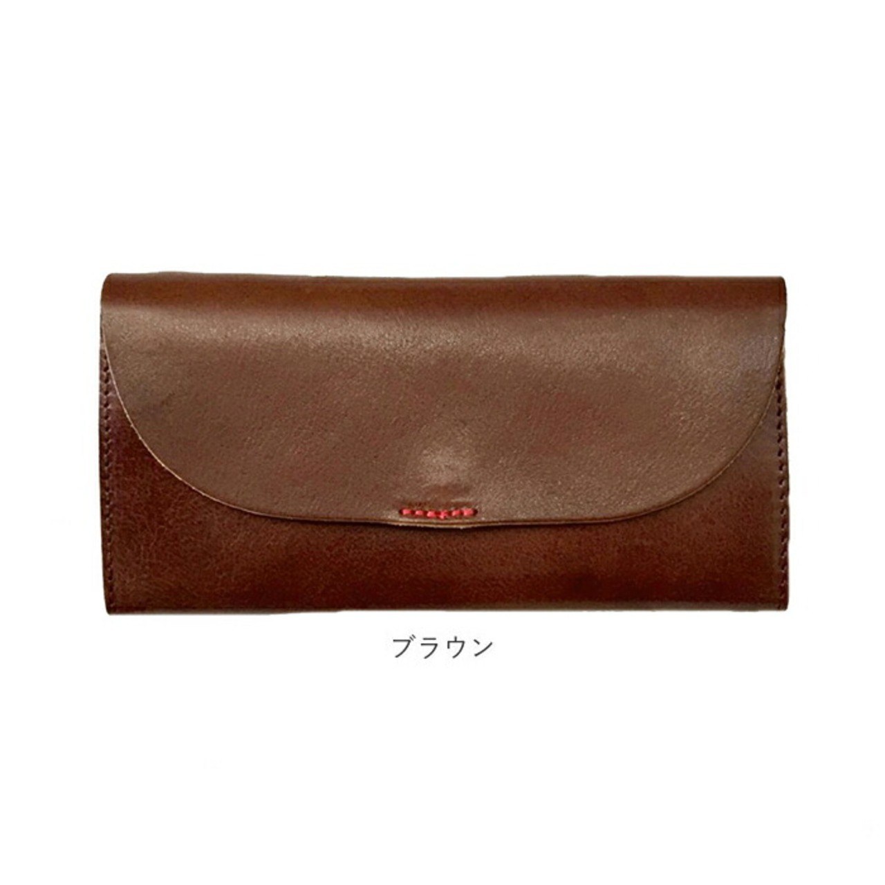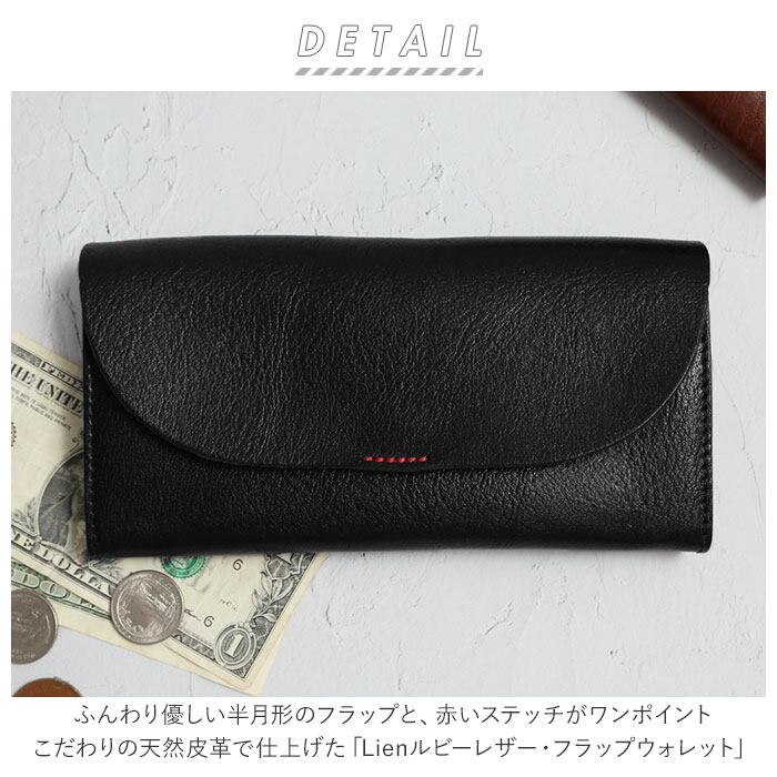 ・ふんわり優しい半月形のフラップと、赤いステッチがワンポイント。こだわりの天然皮革で仕上げた「Lienルビーレザー・フラップウォレット」。