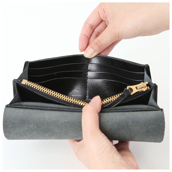 ・ウォレット外観からは装飾を潔く削ぎ落とし、滑らかな天然ヌメ革の素材感がいっそう際立つシンプルなルックスが特徴。