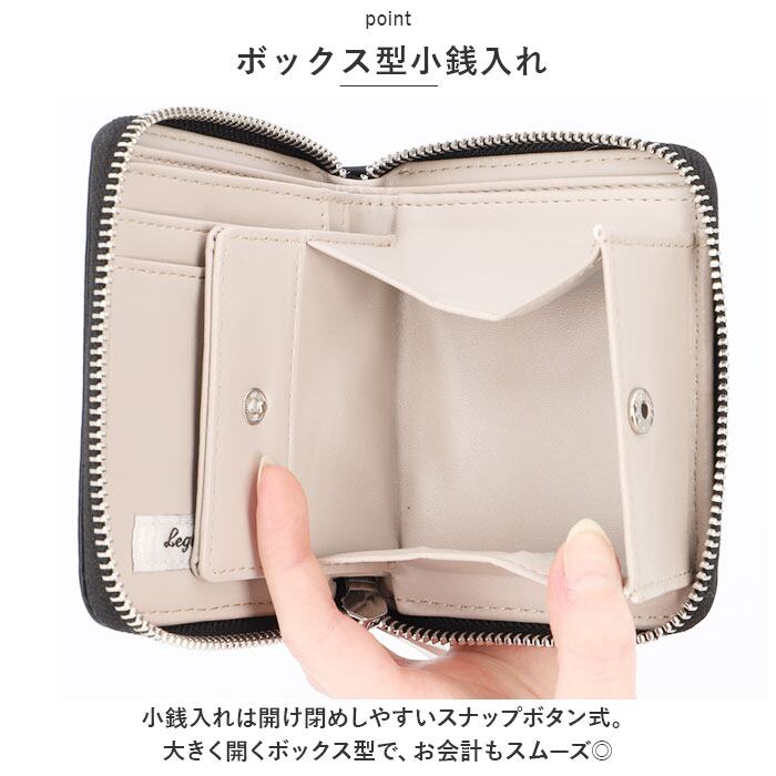 ・小銭入れは開け閉めしやすいスナップボタン式。大きく開くボックス型で、お会計もスムーズ◎