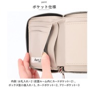 ・内側:お札入れ×2(前面ルーム内にカードポケット×2)、ボックス型小銭入れ×1、カードポケット×2、フリーポケット×3