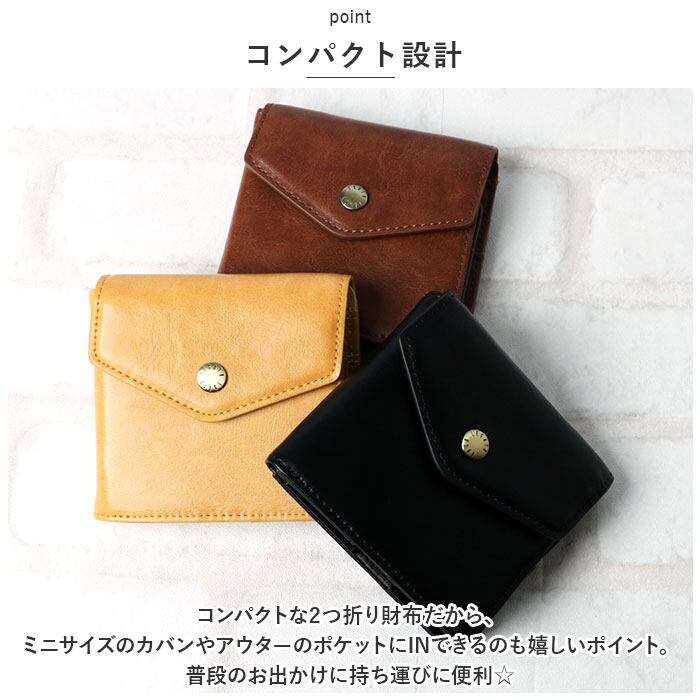 ・コンパクトな2つ折り財布だから、ミニサイズのカバンやアウターのポケットにINできるのも嬉しいポイント。普段のお出かけに持ち運びに便利☆
