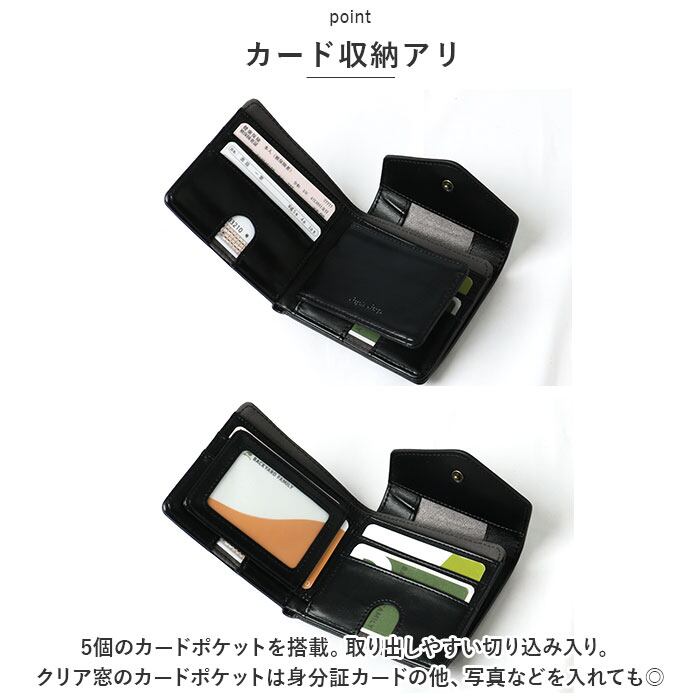 ・5個のカードポケットを搭載。取り出しやすい切り込み入り。クレジットカードやポイントカード、身分証等お買い物に使うカード類もひとまとめ♪