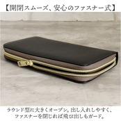 ・ラウンド型に大きくオープン。出し入れしやすく、ファスナーを閉じれば飛び出しもガード。