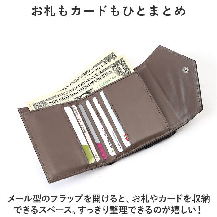 ・メール型のフラップを開けると、お札やカードを収納できるスペース。すっきり整理できるのが嬉しい!