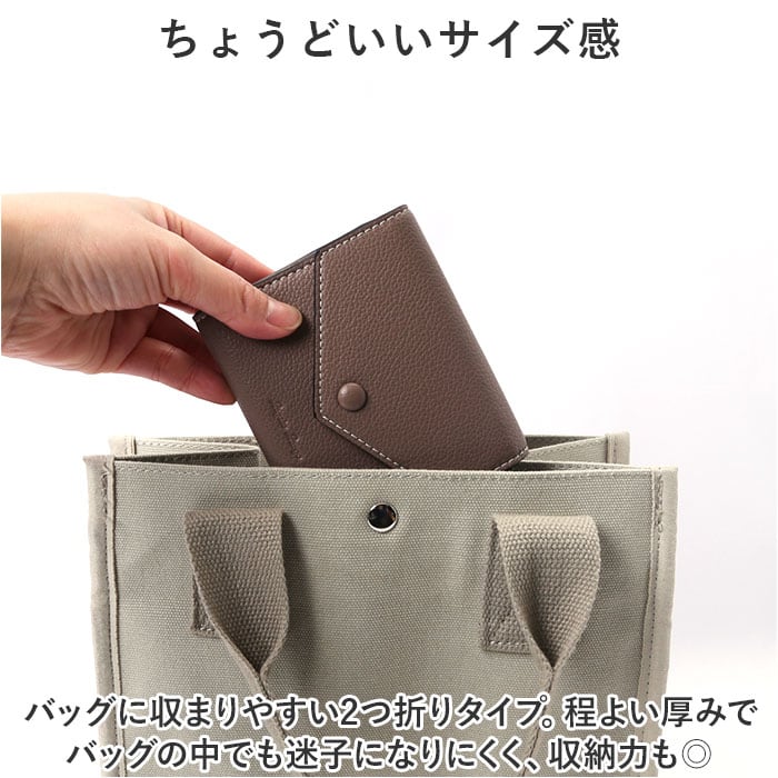 ・バッグに収まりやすい2つ折りタイプ。程よい厚みでバッグの中でも迷子になりにくく、収納力も◎