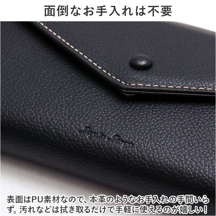 ・表面はPU素材なので、本革のようなお手入れの手間いらず。汚れなどは拭き取るだけで手軽に使えるのが嬉しい!