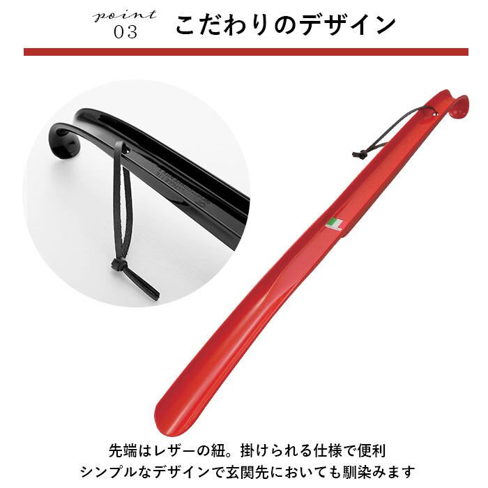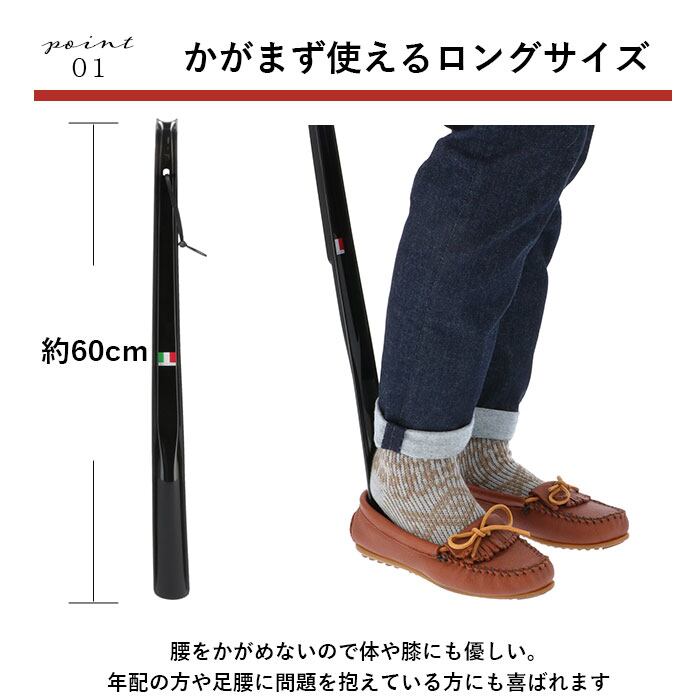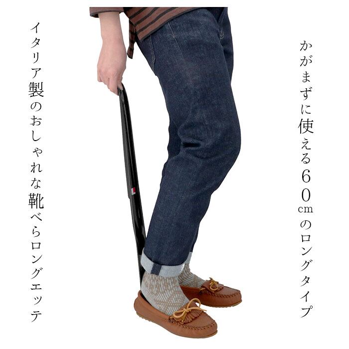 ・長いからラクラク!かがまずに使える60cmのロングタイプの靴べら。玄関先で立ったままスッと履ける。