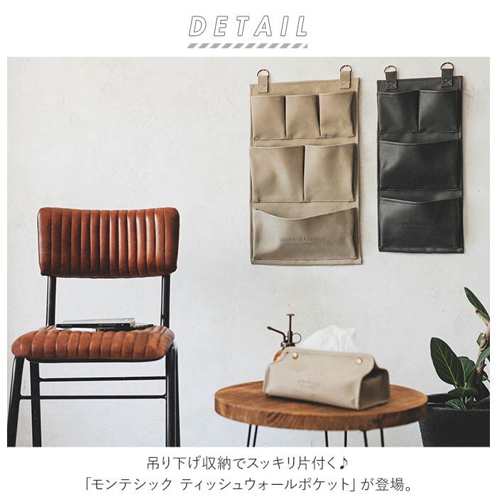 ウォールポケット 壁掛け 通販 収納 ポケット ティッシュケース 吊り下げ レターラック 状差し ティッシュカバー 吊り下げ収納 小物入れ おしゃれ 高級感 合皮 レザー調 フェイクレザー HABITER アビテ MONTECHIC モンテシック LR-609 収納用品 生活雑貨 日用品雑貨