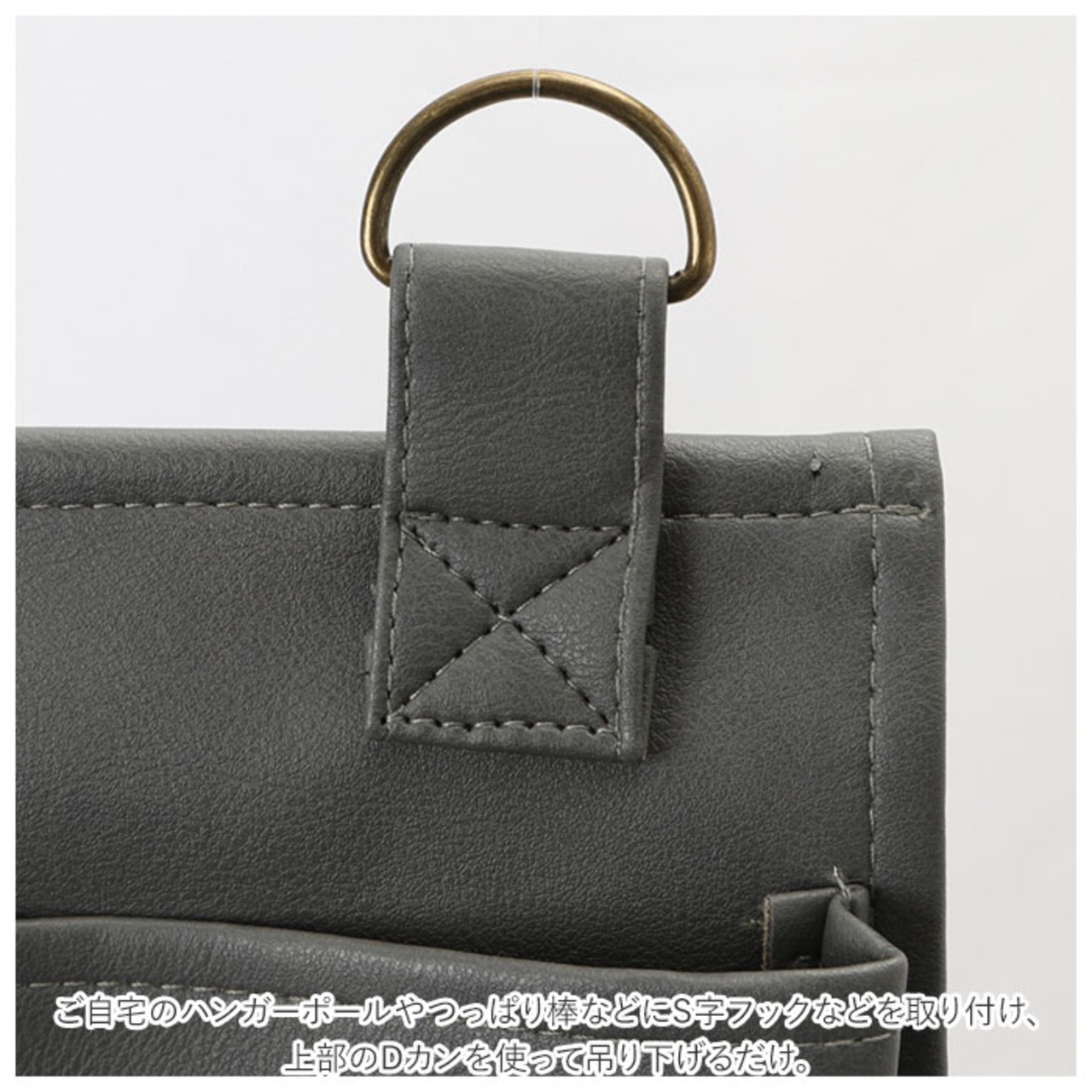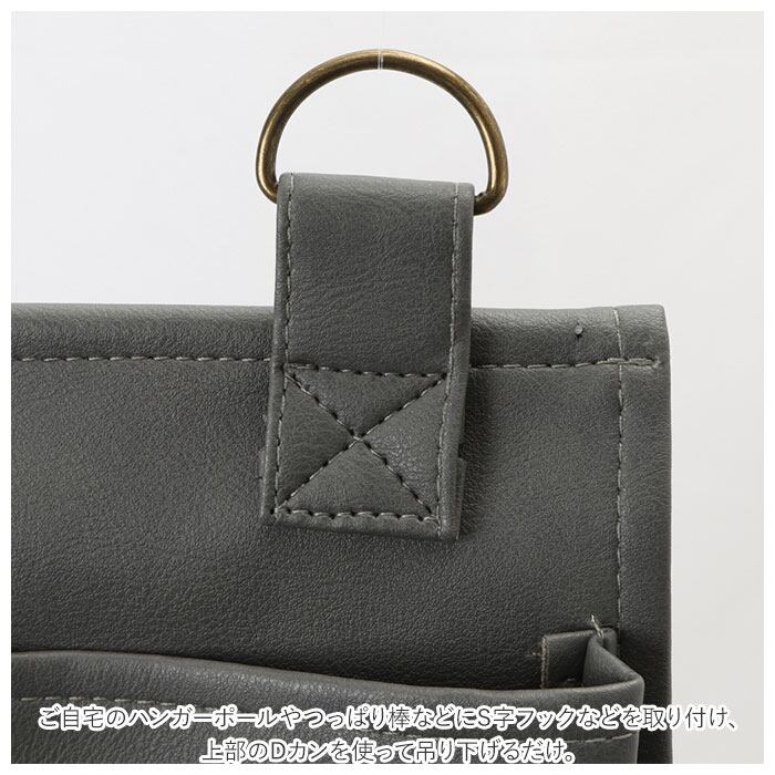 ・ご自宅のハンガーポールやつっぱり棒などにS字フックなどを取り付け、上部のDカンを使って吊り下げるだけ。クローゼットやハンガーラックに小物収納ツールをプラス!