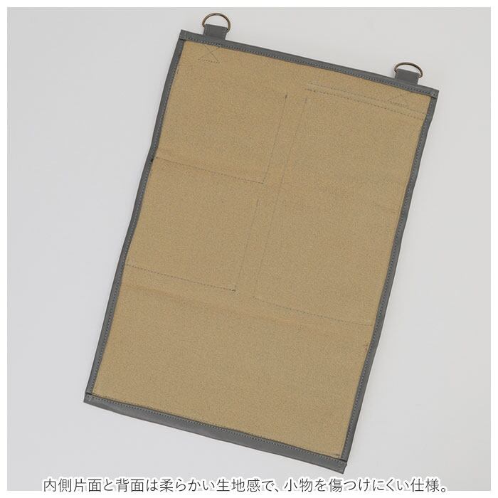・表面は手触り滑らかな、くたっとした質感。内側片面と背面は柔らかい生地感で、小物を傷つけにくい仕様。