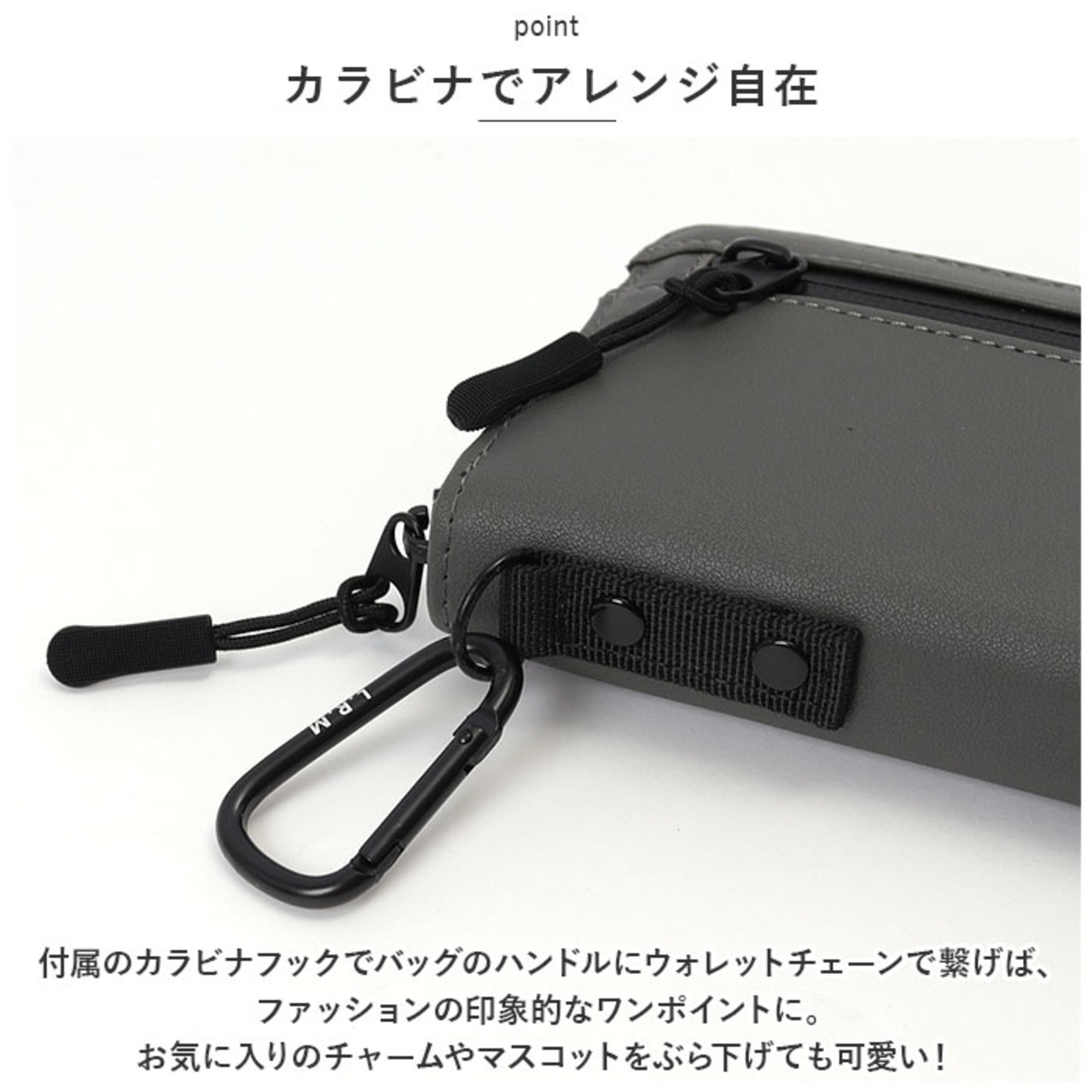 ・付属のカラビナフックでバッグのハンドルにウォレットチェーンで繋げば、ファッションの印象的なワンポイントに。お気に入りのチャームやマスコットをぶら下げても可愛い!