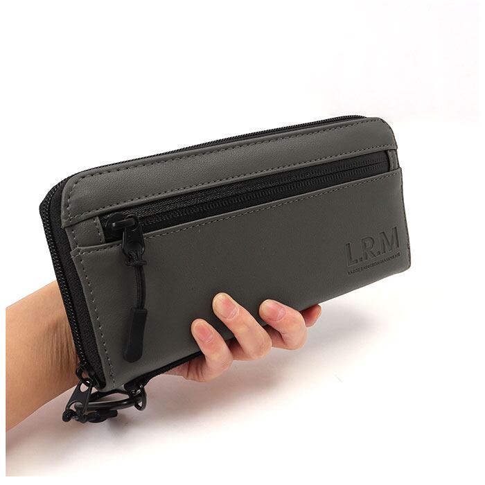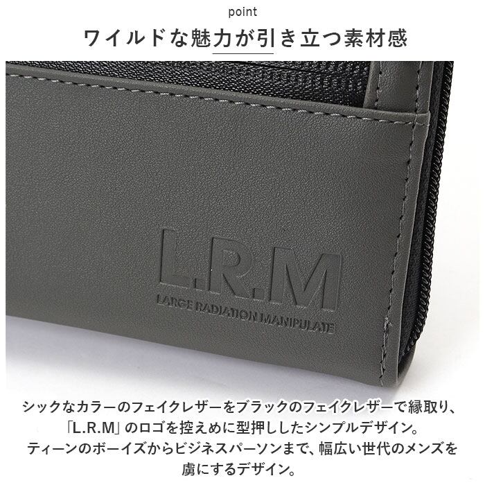 ・シックなカラーのフェイクレザーをブラックのフェイクレザーで縁取り、「L.R.M」のロゴを控えめに型押ししたシンプルデザイン。ティーンのボーイズからビジネスパーソンまで、幅広い世代のメンズを虜にするデザイン。