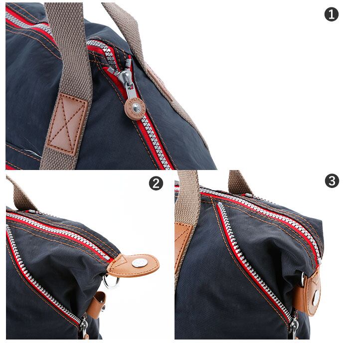 ・上部左右のジッパーを閉めて使用可能。スポーツバッグとしても、もちろん普段使いにも重宝するバッグ。