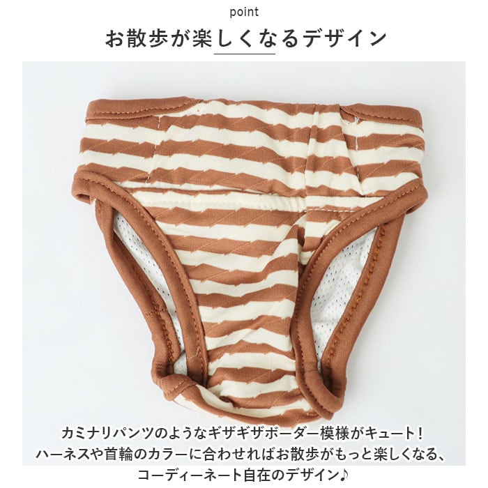 ・カミナリパンツのようなギザギザボーダー模様がキュート!ハーネスや首輪のカラーに合わせればお散歩がもっと楽しくなる、コーディーネート自在のデザイン♪