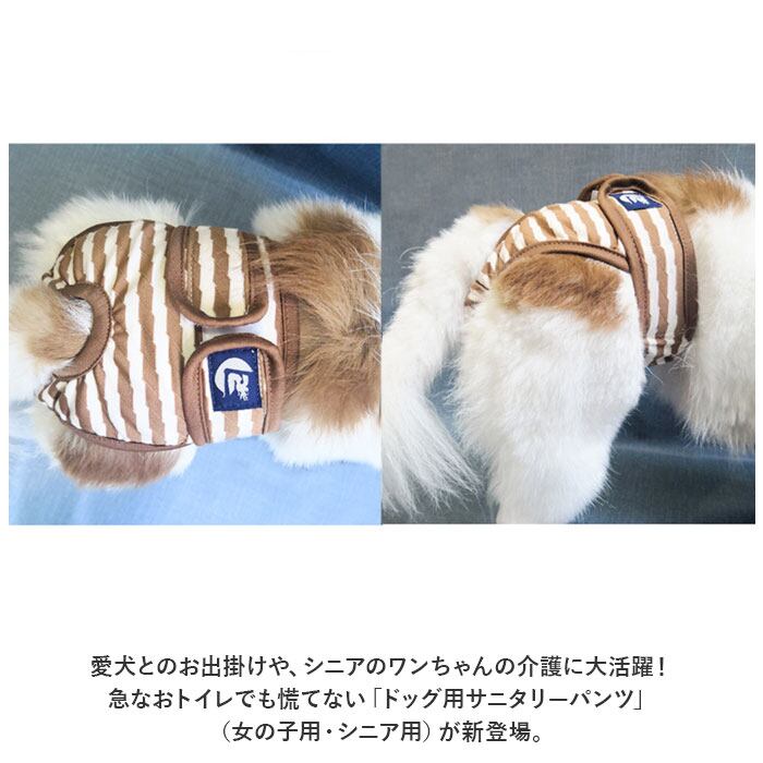 ・愛犬とのお出掛けや、シニアのワンちゃんの介護に大活躍!急なおトイレでも慌てない「ドッグ用サニタリーパンツ」(女の子用・シニア用)が新登場。