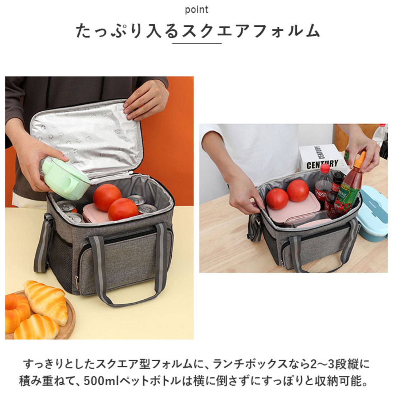 ・ランチバッグとしてはもちろん、スーパーで買った生鮮食品・デザートを持ち帰るときや、アウトドアへの食材の持ち運びにも大活躍。