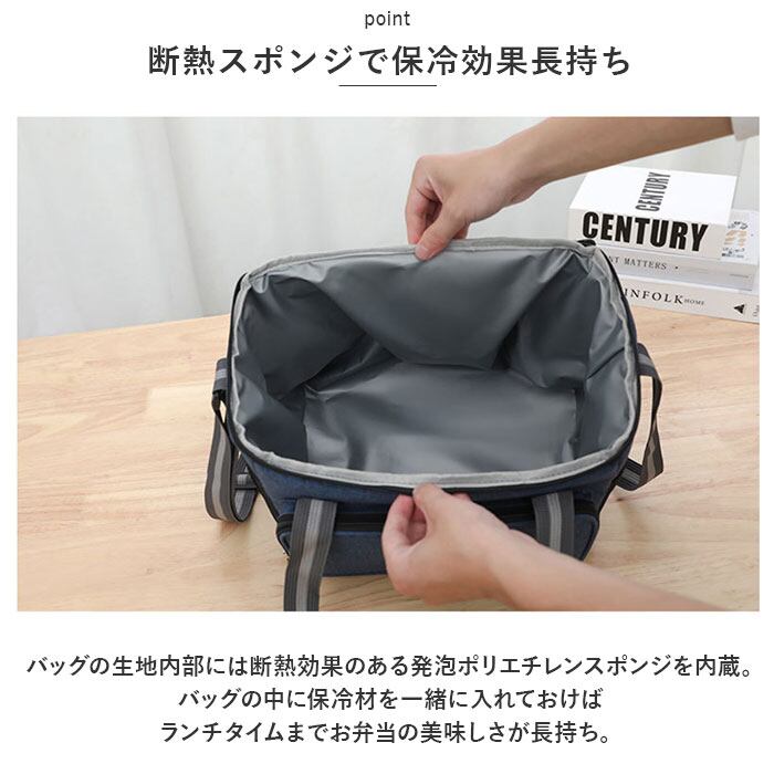 ・バッグの生地内部には断熱効果のある発泡ポリエチレンスポンジを内蔵。バッグの中に保冷材を一緒に入れておけば、ランチタイムまでお弁当の美味しさが長持ち。
