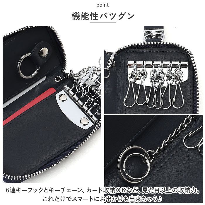 6連キーフックとキーチェーン、カード収納OKなど、見た目以上の収納力。これだけでスマートにお出かけも出来ちゃう♪