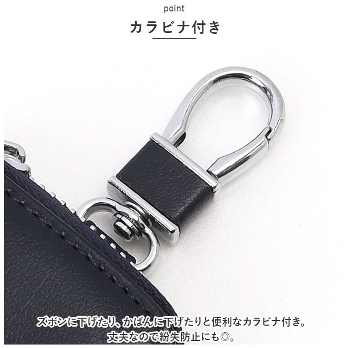 ・ズボンに下げたり、かばんに下げたりと便利なカラビナ付き。丈夫なので紛失防止にも◎。