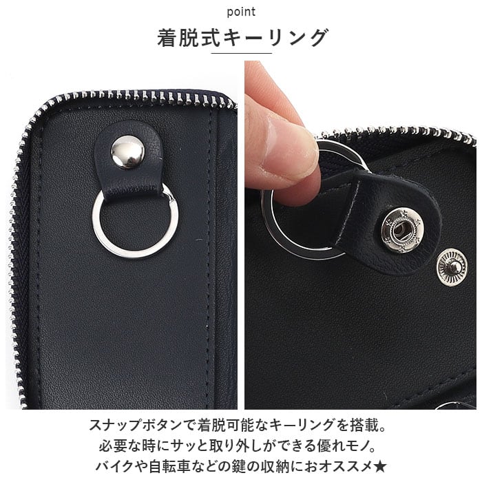 ・スナップボタンで着脱可能なキーリングを搭載。必要な時にサッと取り外しができる優れモノ。バイクや自転車などの鍵の収納におオススメ★