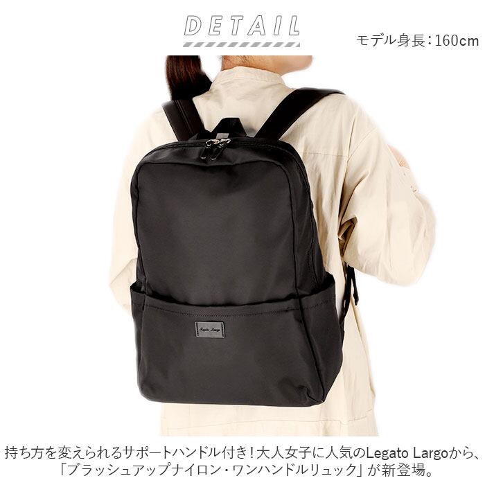・持ち方を変えられるサポートハンドル付き!大人女子に人気のLegato Largoから、「ブラッシュアップナイロン・ワンハンドルリュック」が新登場。