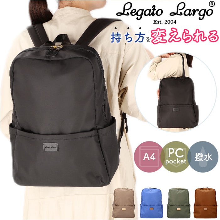 レガートラルゴ リュック ナイロン LT-D1233 Legato Largo 通販 リュックサック バックパック デイパック レディース 通勤 通学 A4 パソコン 13インチ PC 10ポケット 背面ポケット 撥水 はっ水 おしゃれ シンプル ビジネス カジュアル ブラッシュアップナイロン