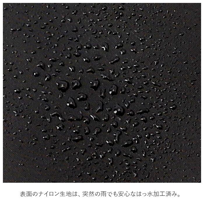 ・表面のナイロン生地は、突然の雨でも安心なはっ水加工済み。底面のフェイクレザー部分は汚れがサッと拭き取れるのも嬉しいポイント。