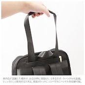 ・車内など混雑した場所や、お会計時に肩掛けにできるサポートハンドルも装備。リュックとして使用するときは、背面ポケットにコンパクトにハンドルを収納可能。