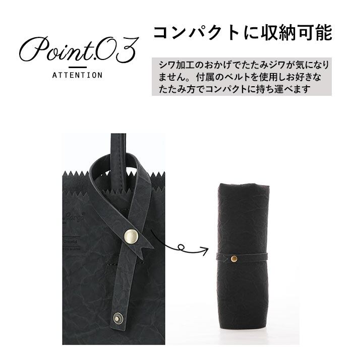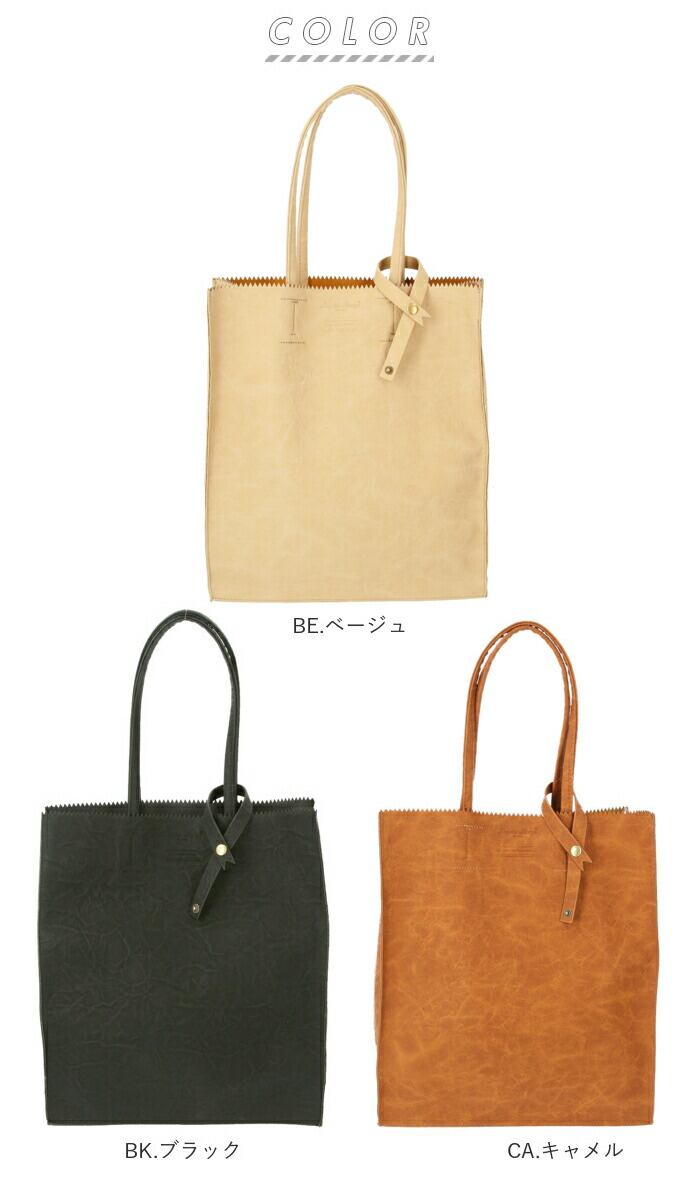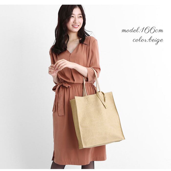 ・紙袋をイメージさせる、シワ加工が施された生地で作られたバッグ。