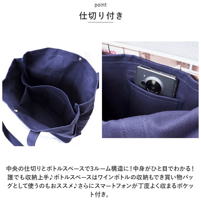 ・ボトルスペースはワインボトルの収納もでき買い物バッグとして使うのもおススメ♪