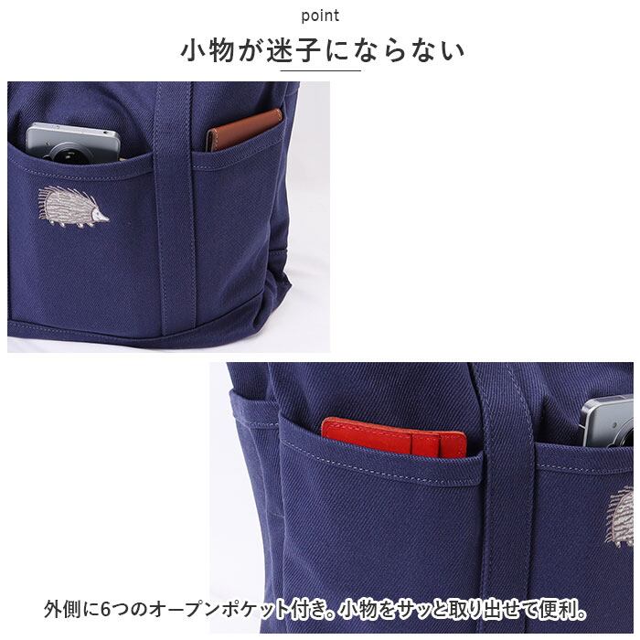 ・外側に6つのオープンポケット付き。小物をサッと取り出せて便利。