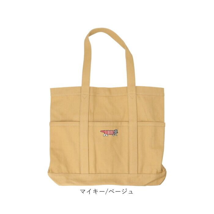 ・程よい厚みがあり、丈夫な綿ツイル生地を使用。マチ付きで自立するのもポイント。